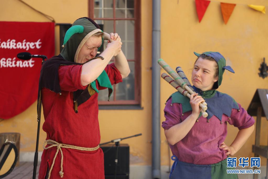 7月1日,演員在芬蘭圖爾庫舉行的“中世紀(jì)市集”上表演。