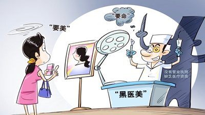 “輕醫(yī)美”之“輕”,往往讓人誤以為風(fēng)險極低而輕易選擇此類服務(wù)。有消費者隨便找一家生活美容館就敢接受“輕醫(yī)美”服務(wù),有的甚至熟人間相互注射美容針,極大增加了安全隱患?!拜p醫(yī)美”不只有“美”,本質(zhì)上是“醫(yī)”。對“輕醫(yī)美”存在的風(fēng)險必須高度重視。