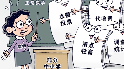 人數(shù)不夠教師來湊。主責(zé)主業(yè)成“副業(yè)”,工作負(fù)擔(dān)蹭蹭漲,讓教師苦不堪言。教師的時間都用在“副業(yè)”上了,哪還有時間教書育人?為教師減負(fù),要減掉的正是那些教師不應(yīng)承擔(dān)、與教育教學(xué)無關(guān)的事項,既要“治標(biāo)”,也要“治本”。