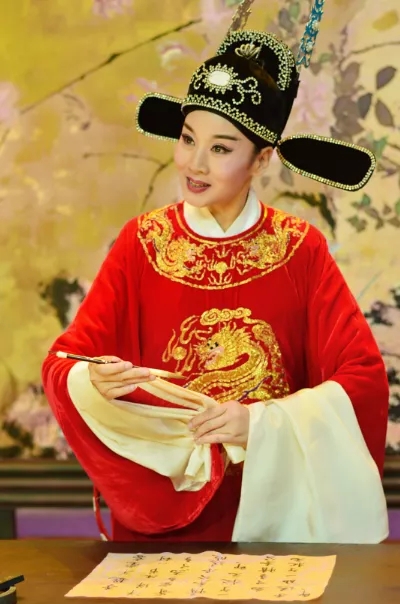 提到黃梅戲,經(jīng)典名劇《女駙馬》是不可不提的重要作品。這部劇是黃梅戲最為著名的代表之一,塑造劇中“馮素珍”這個角色,需要表演者具備極強的專業(yè)功底與豐富的表演經(jīng)驗。尤其是女扮男裝中狀元的這一場戲,演員要時刻注意心境的轉(zhuǎn)換,旦行與生行的靈活切換,采用戲曲程式化的動作把人物內(nèi)心戲進行外化表現(xiàn),讓觀眾跟隨演員的情緒而動。