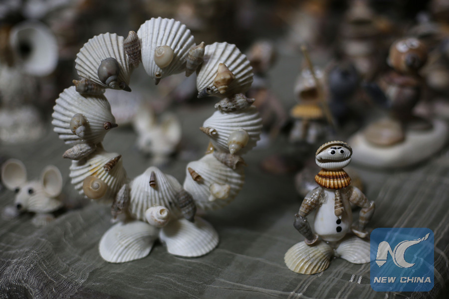"Collecting shells and snails attracted me to transform them into artistic forms to develop my talent and passion for this art," al-Madhoun, a father of two children, told Xinhua as he used a hot melt glue gun to stick pieces together.