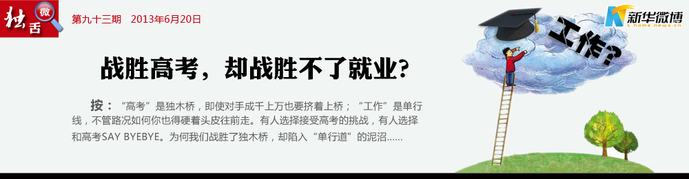 花費了高昂的學習成本、浪費了寶貴的年華、經歷了非人的摧殘,結果戰(zhàn)勝了高考,卻陷入“就業(yè)難”的泥沼。當很多大學生面臨畢業(yè)就失業(yè)、起薪比農民工還低的時候,曾一直縈繞在耳邊的“高考成功、人生美滿”的話語,怎么變成了一記耳光、一個笑話?