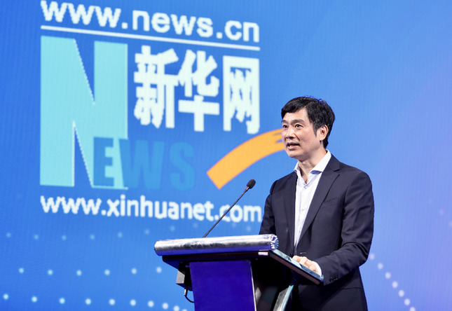 5月27日,巴彥淖爾市人民政府與新華網(wǎng)戰(zhàn)略合作簽約儀式在京舉行。圖為新華網(wǎng)黨委常委、副總裁申江嬰致辭。新華網(wǎng) 張 斌 攝
