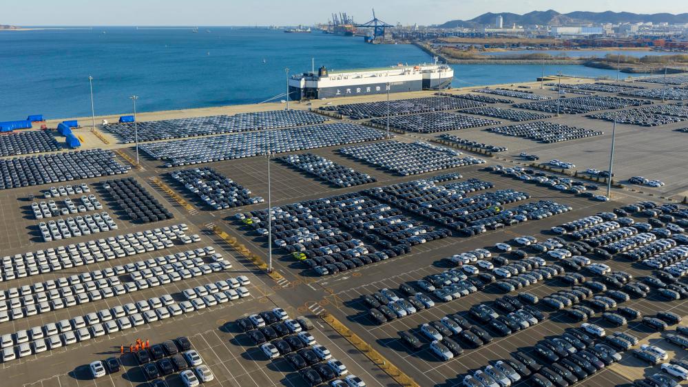 商品车在大连汽车码头整齐停放,等待装船发运(2025年11月18日摄,无人机照片)。新华社发(朱万健 摄)