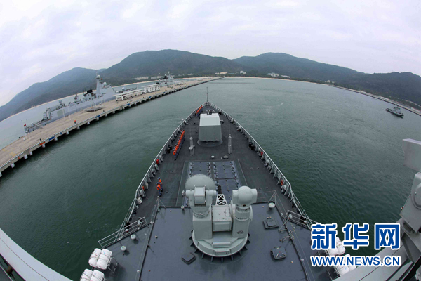 這是2月10日拍攝的停泊在三亞某軍港的駱馬湖艦(左)與??谂灐.?dāng)日下午,由海軍南海艦隊(duì)導(dǎo)彈驅(qū)逐艦長(zhǎng)沙艦、??谂灪途C合補(bǔ)給艦駱馬湖艦組成的遠(yuǎn)海訓(xùn)練編隊(duì)駛離三亞某軍港。隨后,他們將在南海某海域與航空兵等部隊(duì)展開聯(lián)合演練,拉開這次遠(yuǎn)海訓(xùn)練的序幕。新華社記者 曾濤 攝