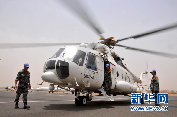 7月31日,中國首批維和直升機(jī)分隊在蘇丹喀土穆國際機(jī)場成功首飛。