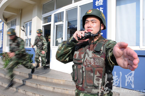 圖為邊檢官兵聽到警報快速反應(yīng)