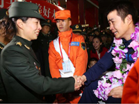 ??? 天地一體,乘組一心。團結(jié)就是力量。載人航天工程是“萬人一桿槍”“千人一艘船”的龐大系統(tǒng)工程,各系統(tǒng)之間需要密切配合?!疤斓匾惑w”,就是乘組在天上執(zhí)行任務,戰(zhàn)友在地面輪流值班,為執(zhí)行任務的戰(zhàn)友加油鼓勁,提供技術(shù)和心理支持;“乘組一心”,就是大家相互信任、相互配合、保持默契,一個眼神、一個動作,相互之間都能心領神會,團結(jié)一心奪取任務勝利。