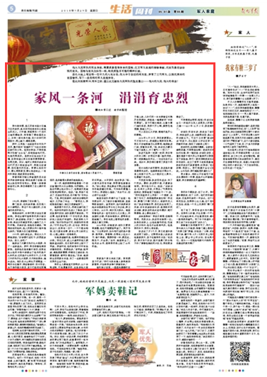 老了老了,我沒有成為當(dāng)代穆桂英。但我的兒孫輩,不論在哪一個行業(yè)干,不論地處南北,不論富貴貧窮,都有一股浩然英雄氣。沒了孫子和重孫,但我又多了許許多多的“兵孫兒”。