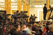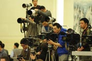 外國媒體記者在會場做好準(zhǔn)備