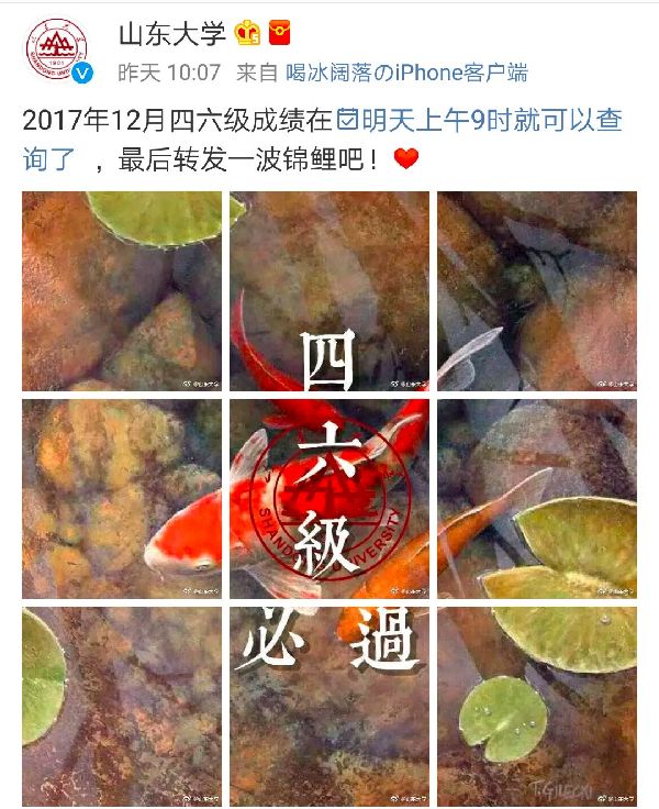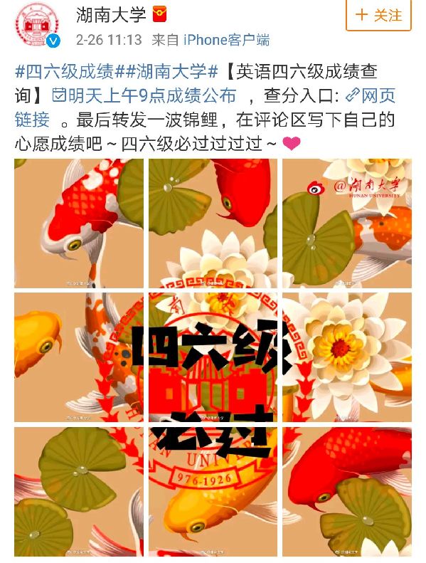 與此同時,昨天不少高校微博也調皮了,有說“轉發(fā)錦鯉”的: