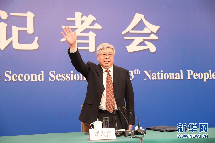十三屆全國(guó)人大二次會(huì)議新聞中心于3月7日10時(shí)50分在梅地亞中心新聞發(fā)布廳舉行記者會(huì),邀請(qǐng)國(guó)務(wù)院扶貧開(kāi)發(fā)領(lǐng)導(dǎo)小組辦公室主任劉永富就“攻堅(jiān)克難——堅(jiān)決打贏脫貧攻堅(jiān)戰(zhàn)”相關(guān)問(wèn)題回答中外記者提問(wèn)。圖為劉永富向記者們揮手示意。新華網(wǎng) 陳杰 攝