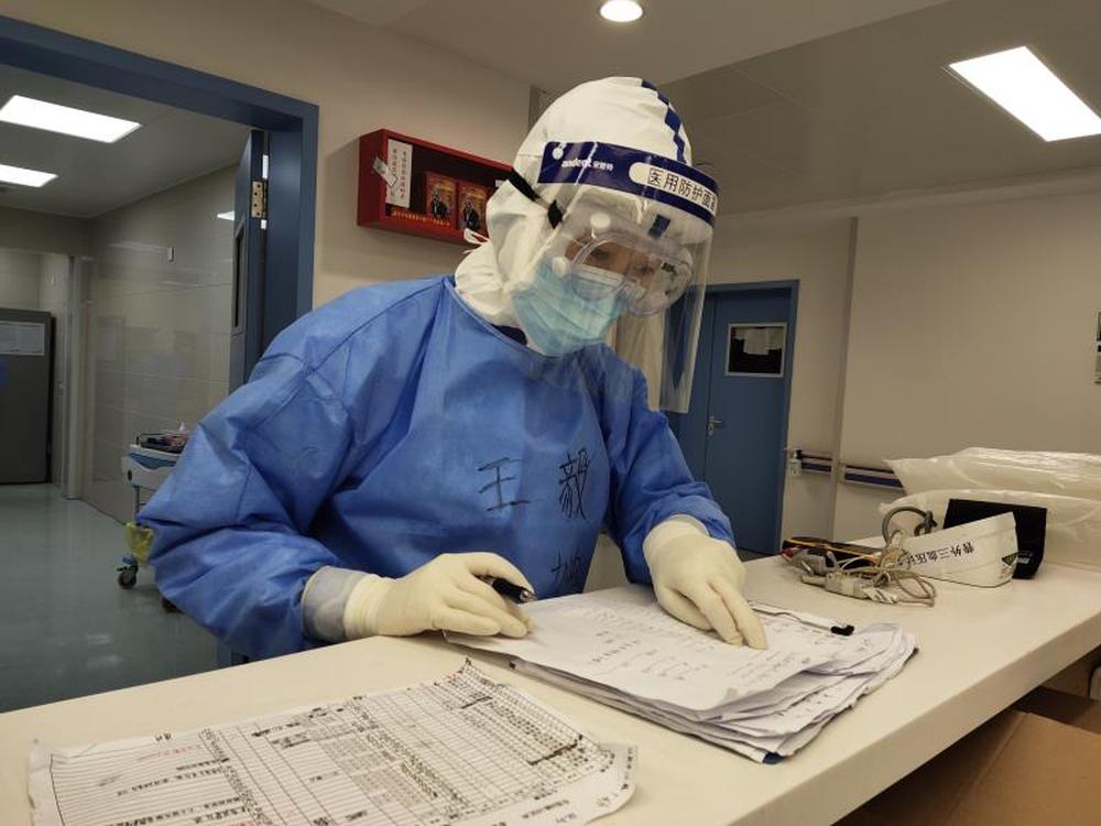 圖為北京大學(xué)人民醫(yī)院馳援武漢醫(yī)療隊(duì)的王毅在工作中。