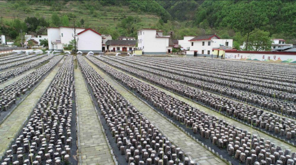 陜西省柞水縣金米村發(fā)展木耳產(chǎn)業(yè)(無(wú)人機(jī)照片)。記者陳昌奇 攝