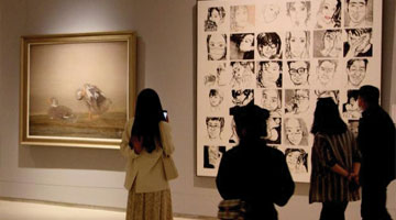 4月27日,参观者在罗家坝遗址博物馆拍摄展出的水陆攻战纹铜豆。