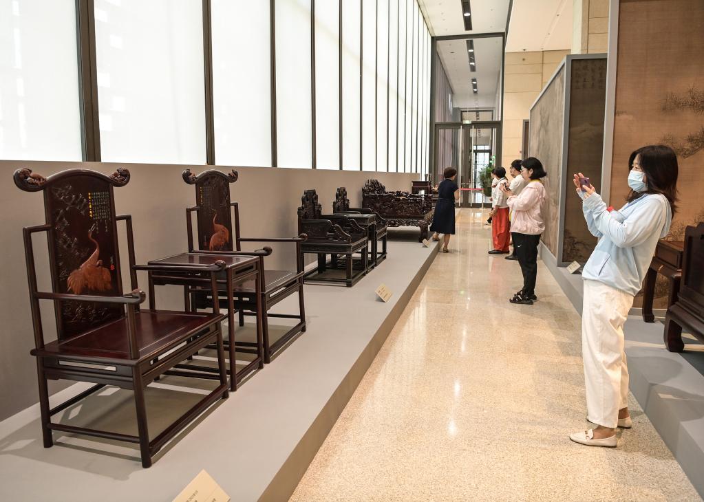 6月26日,游人在河南省安阳市殷墟博物馆内参观。