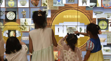 8月19日,身穿古装的工作人员在中国翰园碑林景区与游人互动。