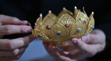 3月28日,在山西省岚县岚城镇,人们用手机拍摄面塑作品。