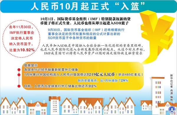 圖表:人民幣10月起正式“入籃” 新華社記者 肖瀟 編制