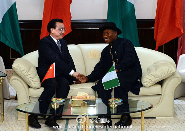????新華網(wǎng)北京5月8日電 據(jù)新華社“新國際”微博報(bào)道,尼日利亞首都阿布賈安全形勢(shì)嚴(yán)峻,人心惶惶……值此時(shí)刻,李克強(qiáng)總理如期到訪,未有絲毫猶豫,體現(xiàn)中國領(lǐng)導(dǎo)人對(duì)推動(dòng)中非合作升級(jí)的重視和誠意;與喬納森總統(tǒng)會(huì)談時(shí),李克強(qiáng)還明確提出,希望尼加強(qiáng)對(duì)中國公民的保護(hù),牽掛之情,溢于言表。