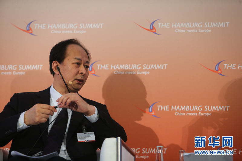 ??? 10月11日,在德國漢堡舉行的中歐論壇漢堡峰會上,鞍鋼集團(tuán)公司總經(jīng)理張曉剛博士發(fā)言。中歐論壇漢堡峰會第六屆會議11日在德國漢堡閉幕。本屆峰會以“中國與歐洲相遇”為主題。來自中歐政治、經(jīng)濟(jì)和學(xué)術(shù)界的500多位代表聚集在一起,探討中歐經(jīng)貿(mào)合作未來趨勢、中國經(jīng)濟(jì)的綠色發(fā)展等重要議題。新華社記者張帆攝