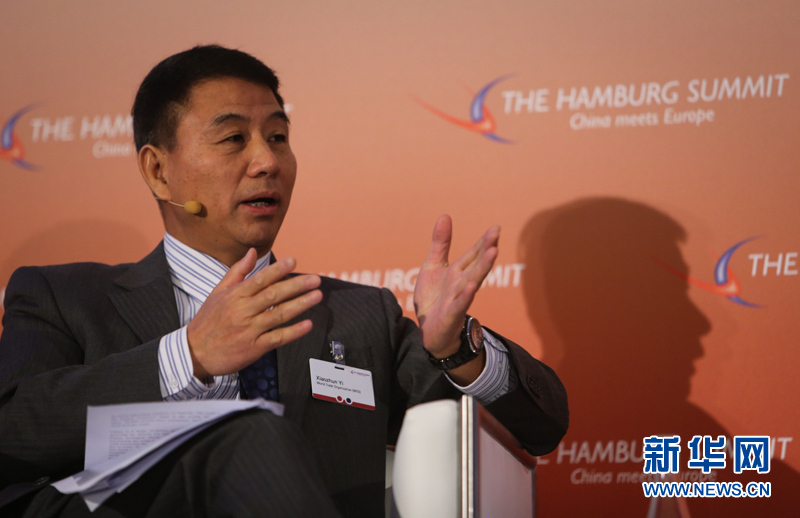 ??? 10月11日,在德國漢堡舉行的中歐論壇漢堡峰會上,世界貿(mào)易組織副總干事易小準(zhǔn)發(fā)言。中歐論壇漢堡峰會第六屆會議11日在德國漢堡閉幕。本屆峰會以“中國與歐洲相遇”為主題。來自中歐政治、經(jīng)濟(jì)和學(xué)術(shù)界的500多位代表聚集在一起,探討中歐經(jīng)貿(mào)合作未來趨勢、中國經(jīng)濟(jì)的綠色發(fā)展等重要議題。新華社記者張帆攝