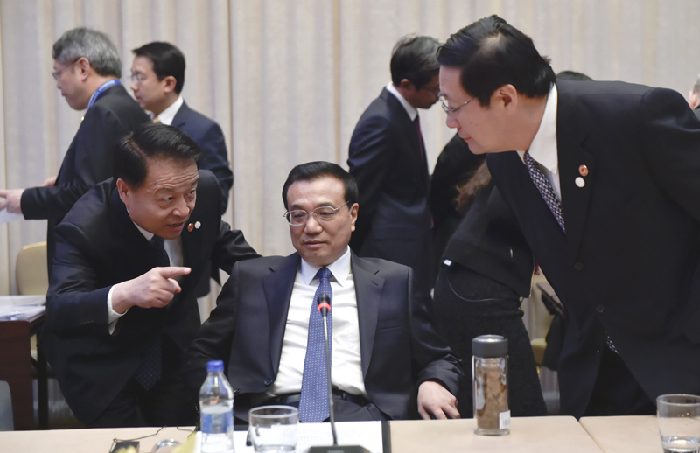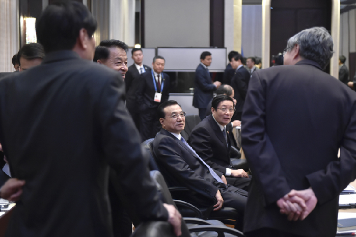 會(huì)議間隙的李克強(qiáng)。中新社 劉震 攝