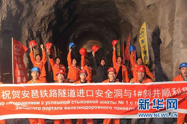 ????圖為烏茲別克斯坦安格連至琶布鐵路隧道進(jìn)口安全洞與1#斜井之間4699米的隧洞實(shí)現(xiàn)貫通現(xiàn)場(chǎng)。