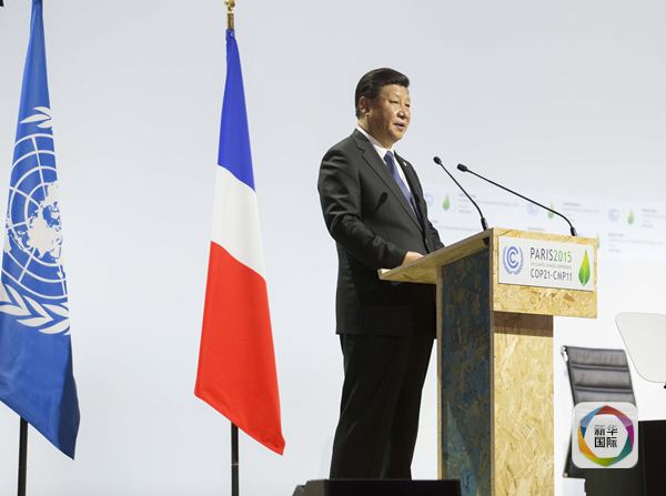 習(xí)近平在巴黎出席氣候變化巴黎大會開幕式并發(fā)表題為《攜手構(gòu)建合作共贏、公平合理的氣候變化治理機制》的重要講話。