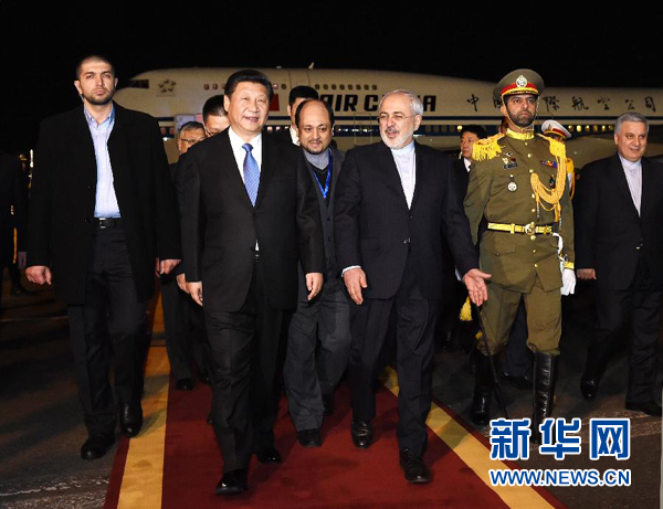 圖為1月22日,國家主席習(xí)近平乘專機抵達伊朗首都德黑蘭,開始對伊朗進行國事訪問。這是在梅赫拉巴德機場,習(xí)近平受到伊朗外交部長扎里夫等熱情迎接。(新華社記者饒愛民攝)