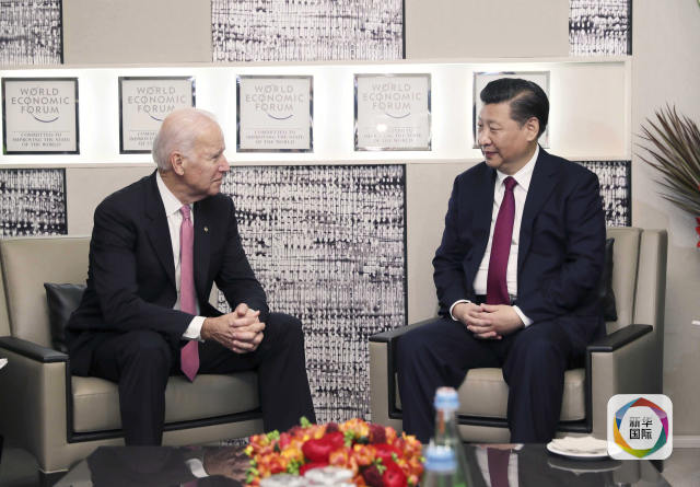 1月17日,國家主席習(xí)近平在瑞士達沃斯會見美國副總統(tǒng)拜登。(新華社記者 蘭紅光 攝)