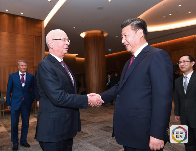 1月17日,國家主席習(xí)近平在瑞士達沃斯會見世界經(jīng)濟論壇主席施瓦布。(新華社記者 饒愛民 攝)