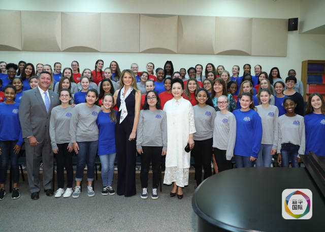 國(guó)家主席習(xí)近平夫人彭麗媛首先參觀巴克藝術(shù)中學(xué)的聲樂教室,她親切地向?qū)W生們問好,并欣賞幾十名學(xué)生們演唱的音樂劇《小婦人》選段《出色》。彭麗媛稱贊學(xué)生們唱得很好。