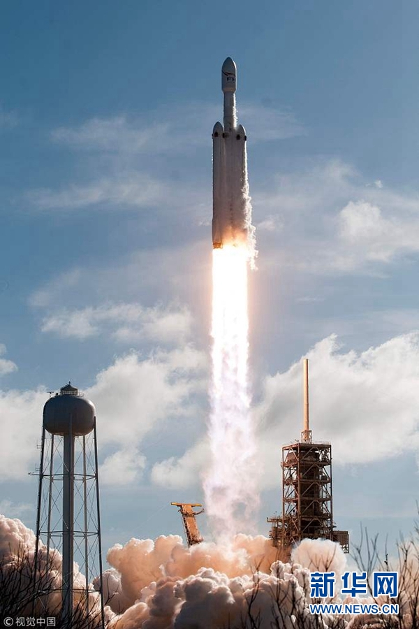 當(dāng)?shù)貢r間2018年2月6日,美國佛州卡納維拉爾角,美國重型運載火箭“獵鷹重型”6日攜帶一輛特斯拉跑車發(fā)射升空。(圖片來源:視覺中國)