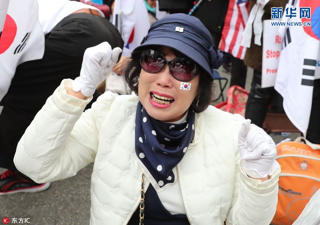 當(dāng)?shù)貢r(shí)間2018年4月6日,韓國(guó)首爾,在首爾中央地方法院前,舉行集會(huì)的韓國(guó)前總統(tǒng)樸槿惠的支持者得知樸槿惠一審獲刑24年傷心落淚。據(jù)報(bào)道,首爾中央地方法院對(duì)韓國(guó)前總統(tǒng)樸槿惠作出一審宣判,判處其有期徒刑24年,罰款180億韓元(約合人民幣1.06億元)。(圖片來(lái)源:東方IC)