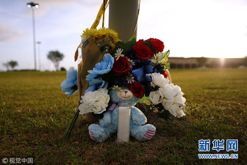美國民眾獻(xiàn)花悼念圣菲高中槍擊案遇難者
