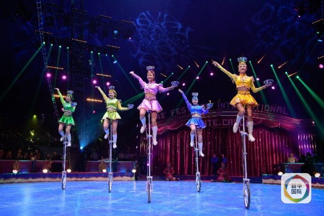 2018年1月19日,來自內(nèi)蒙古民族藝術(shù)劇院雜技團(tuán)的演員在摩納哥蒙特卡洛馬戲節(jié)上表演《五人踢碗》。新華社記者 陳益宸 攝